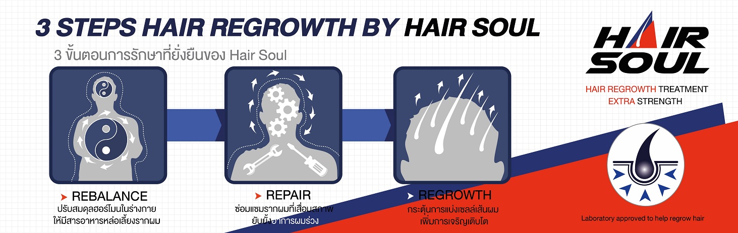ภาพขั้นตอนการทำงานของ ยาปลูกผม Hair Soul ในการ รักษาผมร่วง